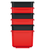 - Available in red and black